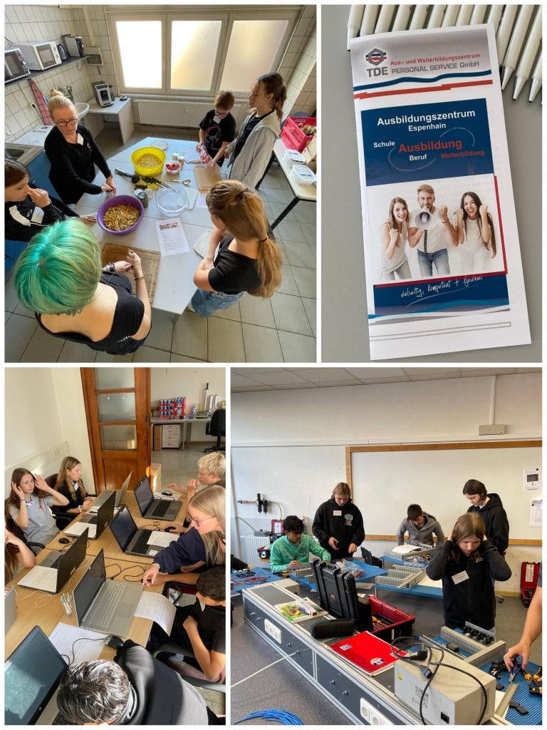 Ende September waren unsere Schülerinnen und Schüler der Jahrgangsstufe 7 zur ersten Berufserkundung im TDE Aus- und Weiterbildungszentrum in Espenhain. Dabei konnten sie sich im handwerklichen, technischen, kulinarischen oder digitalen Bereich ausprobieren.