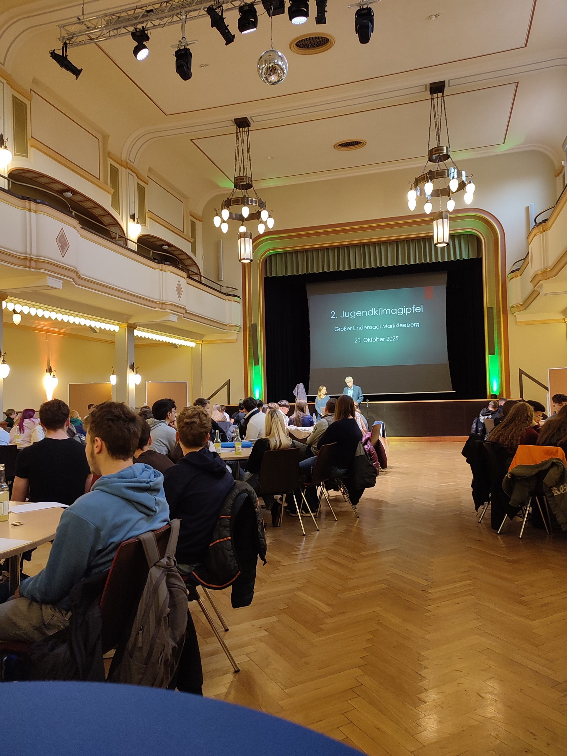 Unsere vier Klassen der Jahrgangsstufe 9 waren von der Stadt Markkleeberg zum 2.Klimagipfel im Lindensaal eingeladen. Nachdem die Schülerinnen und Schüler von OBM Schütze begrüßt wurden, stimmte die Diplom-Meteorologin Michaela Koschak, bekannt auch vom MDR, die Jugendlichen auf die bevorstehenden Workshops ein. Hier sprach sie bereits die Problematiken unserer aktuellen Klimasituation an und versuchte, die Schülerschaft einzubinden, die sich hier noch etwas zaghaft zeigte. Das blieb aber nicht so, denn in acht verschiedenen Workshops bearbeiteten die Neuntklässler diverse Thematiken, die vielleicht gar nicht auf den ersten Blick etwas mit unserem Klima zu tun haben. So befassten sich beispielsweise zwei Workshops mit den Themen Konsum und Kaufverhalten, eine andere Gruppe thematisierte die erneuerbaren Energien. Weitere Themen waren u.a. die Mobilität der Zukunft, Müllvermeidung, Stadtentwicklung, Natur und Ökosystem und auch die Land- und Forstwirtschaft. Dazu ging es für einige Workshops auch raus aus dem Lindensaal.