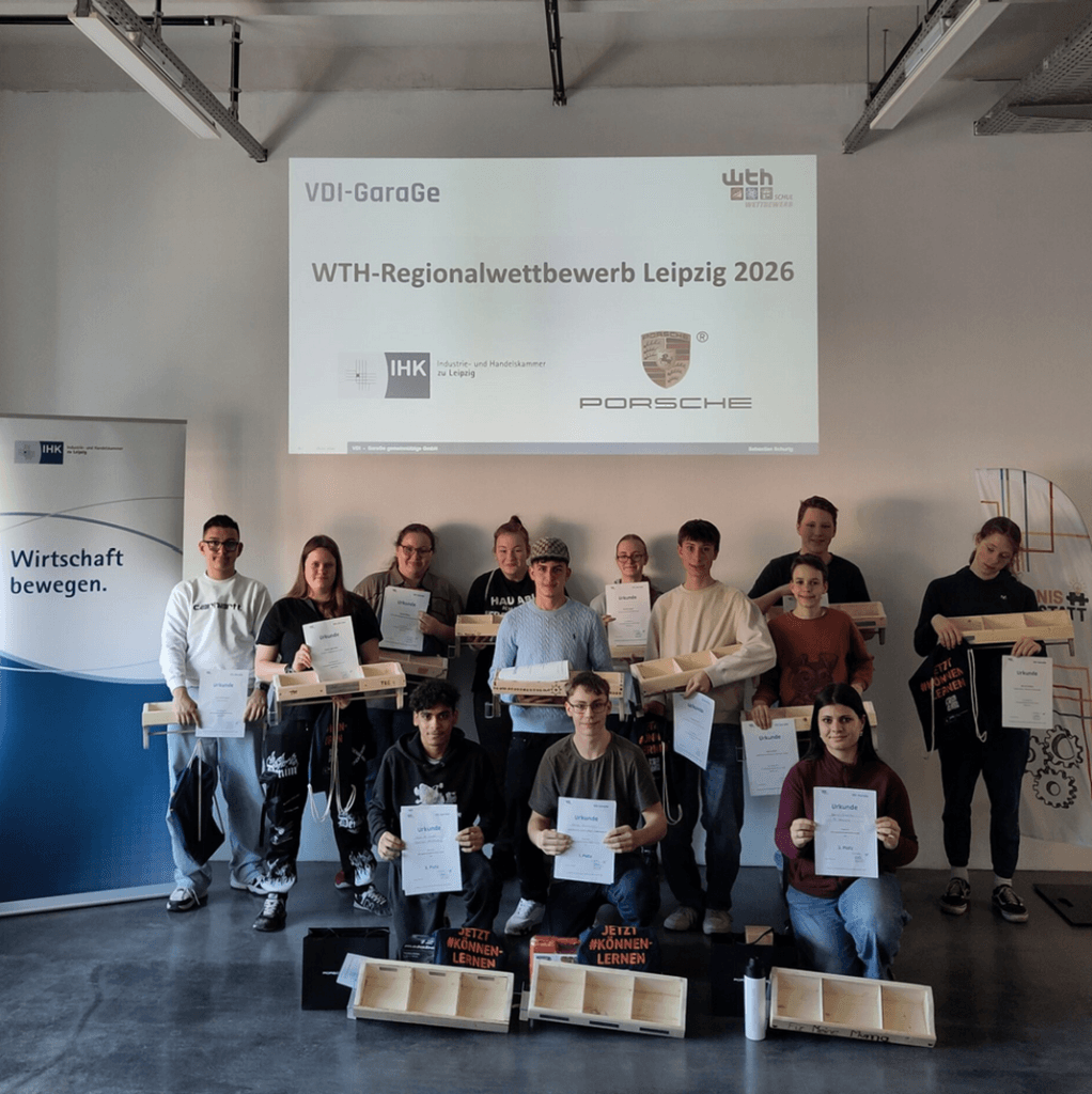 In diesem Jahr war es am 19.03.2026 wieder so weit. Zum 8. Mal luden die VDI GaraGe und verschiedene Unternehmen der Region Schüler und Schülerinnen der 8. und 9.Klassen aus Leipziger Oberschulen und Oberschulen des Umlandes ein, ihre Kenntnisse im Fach WTH unter Beweis zu stellen.