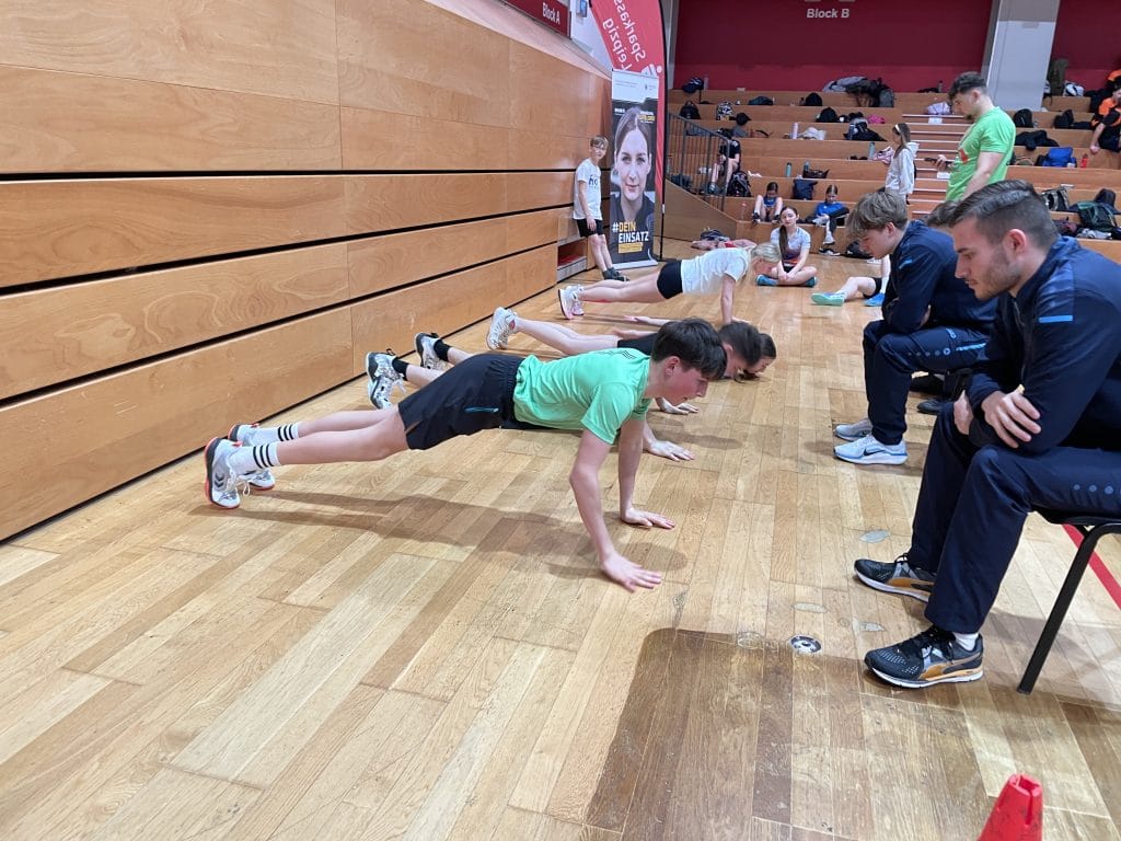 Über mehrere Stunden hinweg bewiesen die Schüler ihre Fitness, Kraft und Ausdauer. In Disziplinen wie Crunches, Medizinballstoßen, Rudern auf dem Ergometer, Seilspringen, Liegestützen sowie einem anspruchsvollen Slalomlauf gaben alle ihr Bestes. Jede Übung verlangte den Teilnehmenden alles ab und wurde mit großem Ehrgeiz absolviert.