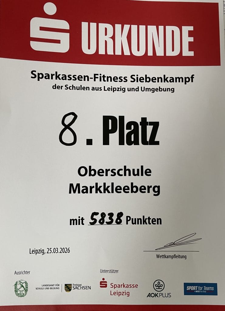 Am Mittwoch, dem 25. März, war es endlich so weit: 24 Schülerinnen und Schüler unserer Schule machten sich auf den Weg nach Leipzig, um beim Fitness-Siebenkampf anzutreten. Jede Klassenstufe stellte jeweils zwei Mädchen und zwei Jungen, die unsere Schule mit großem Einsatz und Teamgeist vertraten.
