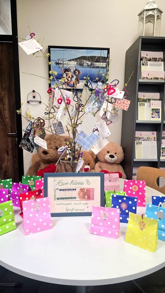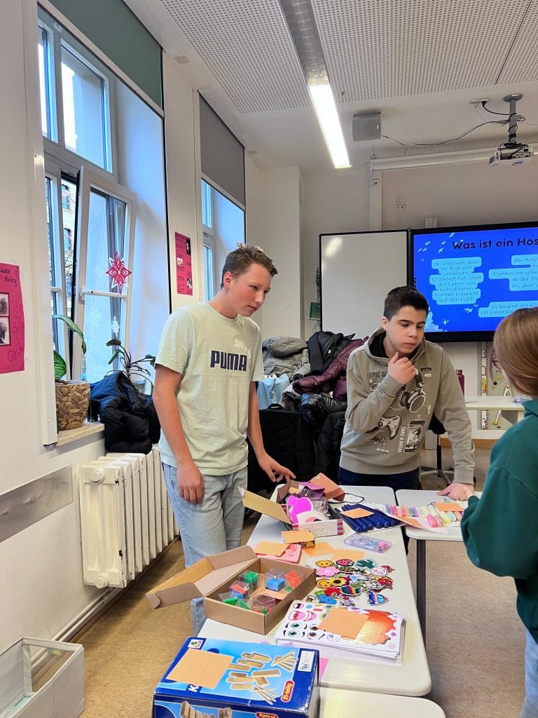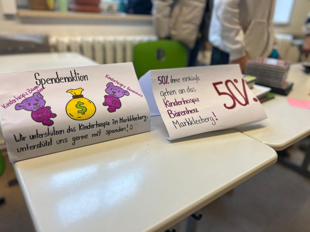 Wir, die Klasse 9b der Oberschule Markkleeberg, engagierten uns im Rahmen des Projekts „Beste 9.“ der Industrie- und Handelskammer (IHK) für das Kinderhospiz Markkleeberg. Bereits im September und Oktober begannen wir mit der Ideenfindung und Planung unseres Projekts. Im November fiel schließlich die Entscheidung, das Kinderhospiz zu unterstützen. Von November bis März setzten wir verschiedene Aktionen um, um Spenden zu sammeln und den Kindern eine Freude zu bereiten. Zum Weihnachtsmarkt unserer Schule organisierten wir einen Flohmarkt, dessen Einnahmen wir vollständig für das Kinderhospiz sammelten. Zusätzlich bastelten wir Schutzengel aus Pfeifenreinigern und gestalteten dazu Mutmachkarten mit aufmunternden Sprüchen, die wir im WTH-Unterricht erarbeiteten. Außerdem entstanden dort kreative Glückskekse aus Moosgummi. Um weitere Spenden zu sammeln, veranstalteten wir in einer Schulpause einen Pizza-Basar. Durch all diese Aktionen konnten wir insgesamt 200 Euro für das Kinderhospiz sammeln. Am 12.03. bereiteten wir die Übergabe vor und stellten alle Geschenke fertig,die wir anschließend liebevoll verpackten. Einen Tag später, am 13.03.2026, fand die Übergabe im Kinderhospiz statt. Dort wurden wir herzlich von Frau Meister empfangen. Wir überreichten unsere Spenden und Geschenke und erhielten einen Einblick in die wichtige Arbeit des Kinderhospizes. Wir hoffen sehr, dass wir den Kindern sowie dem gesamten Team des Kinderhospizes eine Freude machen konnten und mit unserem Projekt ein Zeichen der Unterstützung gesetzt haben.