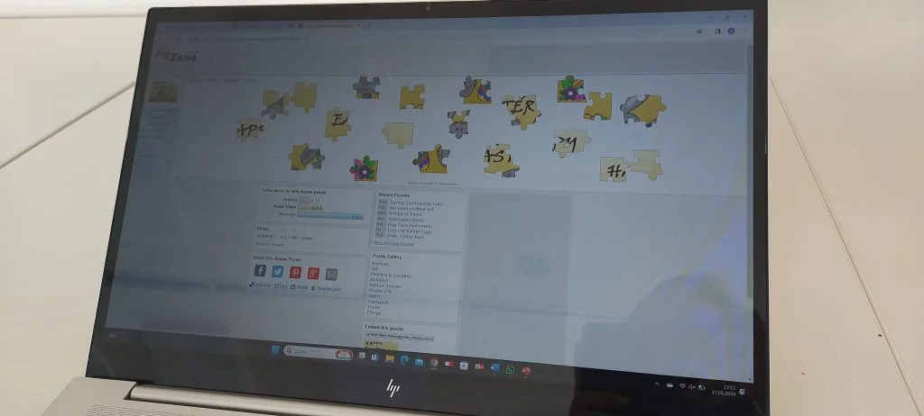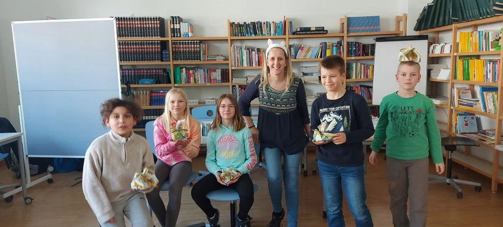 An fünf Stationen stellten sie verschiedene Fähigkeiten und Fertigkeiten der Sprachbeherrschung unter Beweis. Sie fanden österliche Bild- und Textpaare, forschten in Wortgittern nach englischen Osterbegriffen, versteckten mit Hilfe eines Hörtextes bunte Eier auf einem Gartenbild, puzzelten ein Osterpuzzle und malten Eier bunt an, die sie Kindern einer Hasenfamilie zuordneten. Anschließend hoppelten sie selbst nach Anleitung durchs Schulhaus, um ihre eigene Osterüberraschung zu finden.